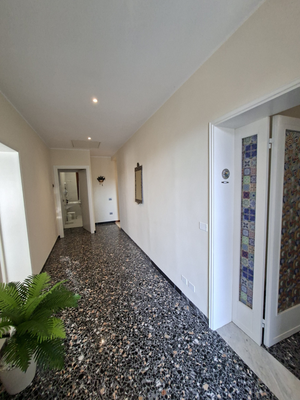 Un ampio disimpegno conduce ad una taverna spaziosa completa di magazzino e ulteriore bagno, perfetta per intrattenere amici o come area ricreativa.
